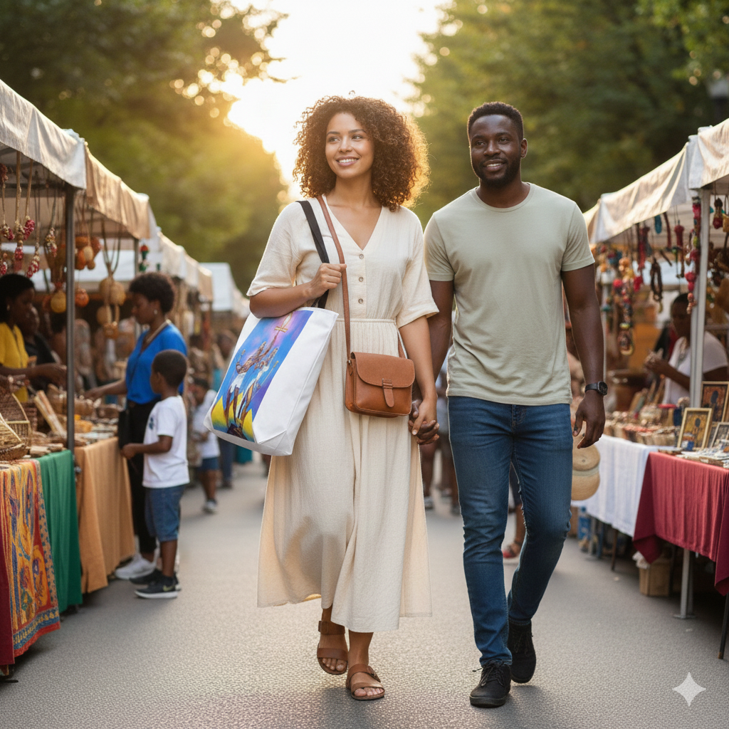 This tote serves as wearable art, sparking conversations about ancient African achievements while providing practical daily use: