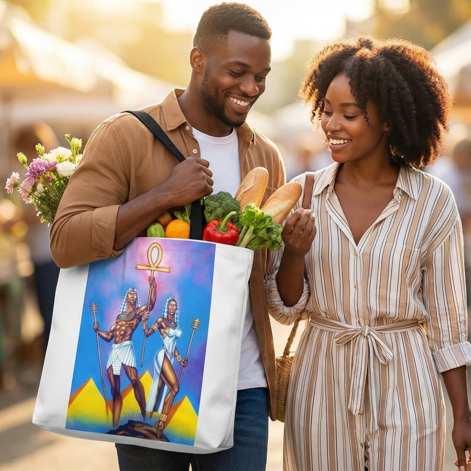 Why This Matters: Your ancestors were not slaves first. They were pyramid builders. They were pharaohs and queens. They were mathematicians calculating geometry that enabled architectural wonders. They were physicians performing surgery and creating pharmaceuticals. They were astronomers mapping stars. They were warriors, priests, priestesses, artists. They built civilizations. They ruled for millennia. And that greatness — that divine creativity, that engineering genius, that spiritual wisdom — flows through melanin hands today. Every time you carry this bag, you're declaring truth that mainstream narratives try to hide: Egypt was African. The pyramids were built by Black hands. The pharaohs were Black. This isn't speculation or Afrocentric fantasy — it's historical fact supported by geography, DNA, ancient testimony, and archaeological evidence. You carry ancestral power within you. Greatness runs in your bloodline. Walk in royal power.