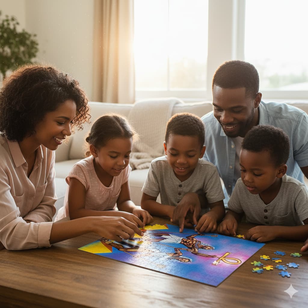 Why This Matters: For too long, ancient Egypt has been portrayed as somehow separate from Africa, its pharaohs and queens whitewashed, its African identity erased or minimized. But this artwork tells the truth: Egypt was built by Black Africans. These pharaohs and queens were African. Their skin was brown. Their hair was textured. Their features were African. And they built the greatest civilization the ancient world had ever seen. When you assemble this puzzle, you're not just fitting pieces together. You're reclaiming narrative. You're affirming truth. You're connecting with ancestors who ruled empires, built architectural marvels, developed sophisticated systems of writing and mathematics, and created art and philosophy that influenced all subsequent civilizations. The pharaoh and queen in this image aren't mythological figures — they represent real people who lived, ruled, loved, and built. They represent your ancestors. Their greatness runs in your bloodline. Their power flows through your heritage. Piece by piece, you're building awareness. Piece by piece, you're assembling African pride. Piece together royal heritage and timeless unity.
