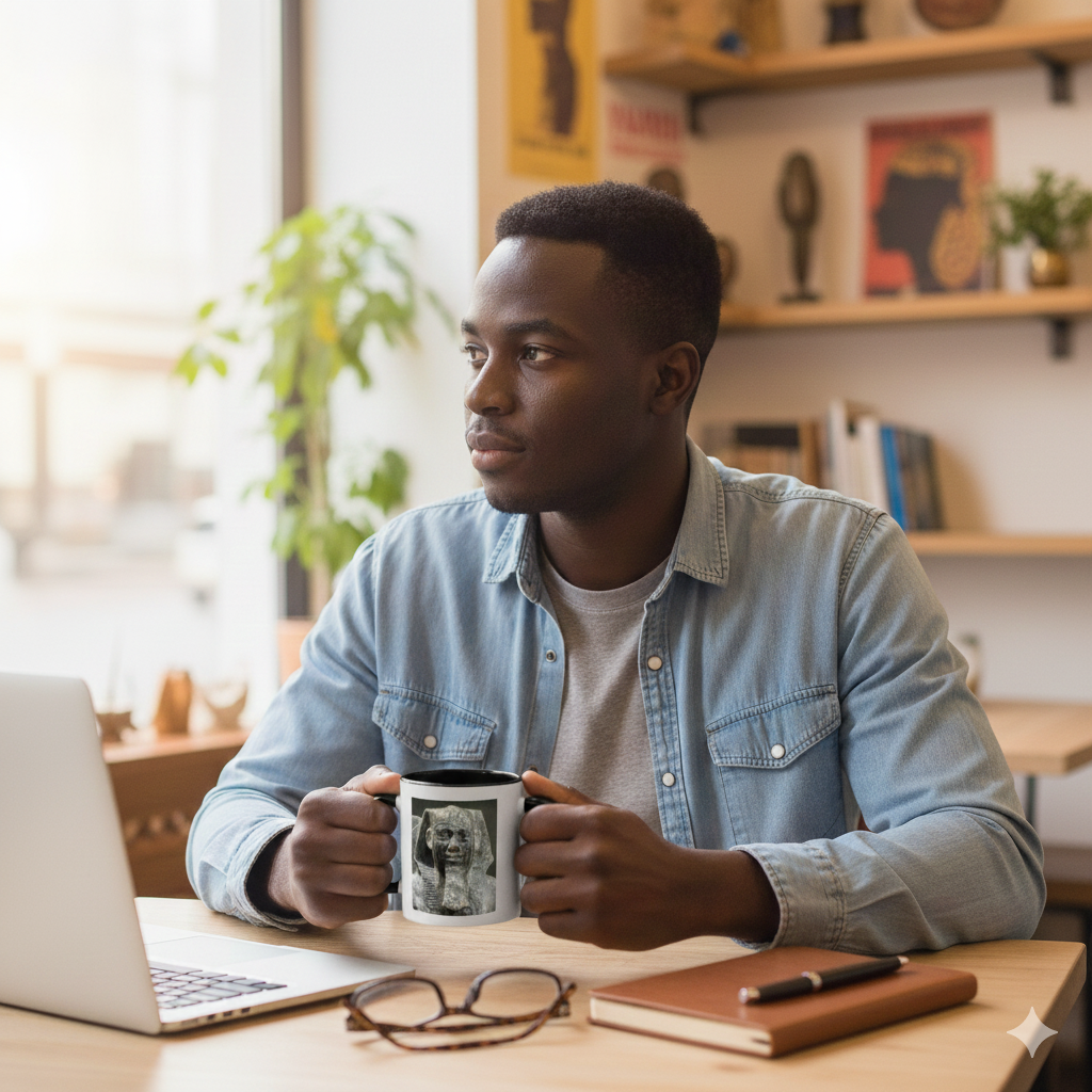 Every morning, as you drink coffee—an African innovation—from a mug celebrating Sahure—an African seafaring pharaoh—you connect to the maritime courage that sent Egyptian ships across open Mediterranean waters, the architectural genius that built the first complete pyramid complex, the diplomatic sophistication that established international trade networks, the Ethiopian discovery of coffee, the Moorish scholars who brought enlightenment to Europe, and your own connection to ancestors who commanded seas and built wonders.